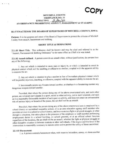 22. Prohibiting Assault, Harassment & Stalking