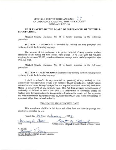 37. Amending Mitchell County Ordinance No. 36