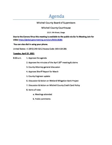 Agenda for April 27, 2021