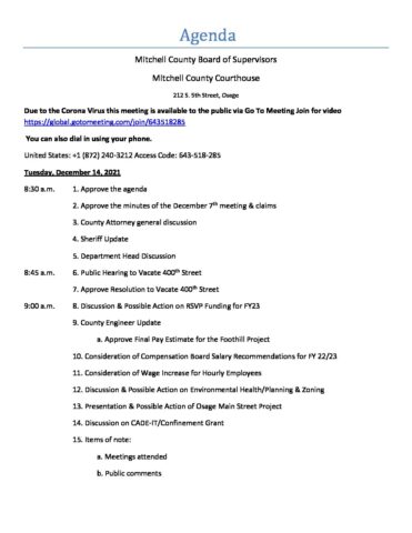 Agenda for December 14, 2021