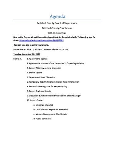 Agenda for December 28, 2021