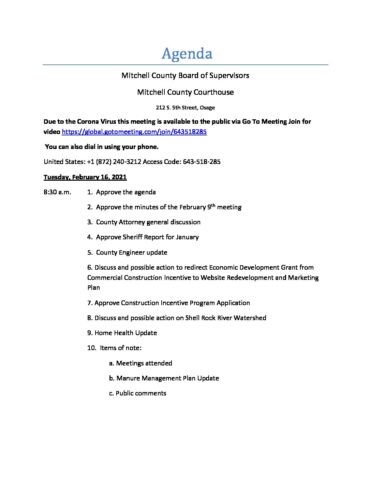 Agenda for February 16, 2021