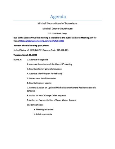 Agenda for March 15, 2022