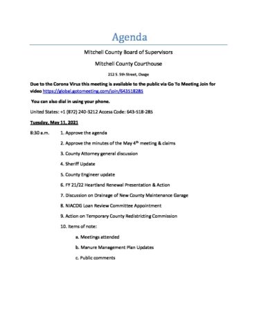 Agenda for May 11, 2021
