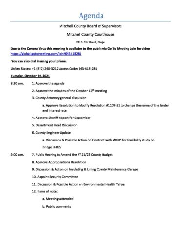Agenda for October 19, 2021