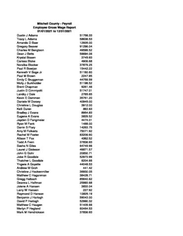 Employee Gross Wage Report 2021